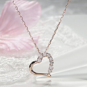 いつの時代も女性に愛され続けるハートモチーフ!ピンクゴールドで描くオープンハートに、輝きのきれいな“ハート&キューピッド”のダイヤモンドをあしらえた、キュートなネックレスです。