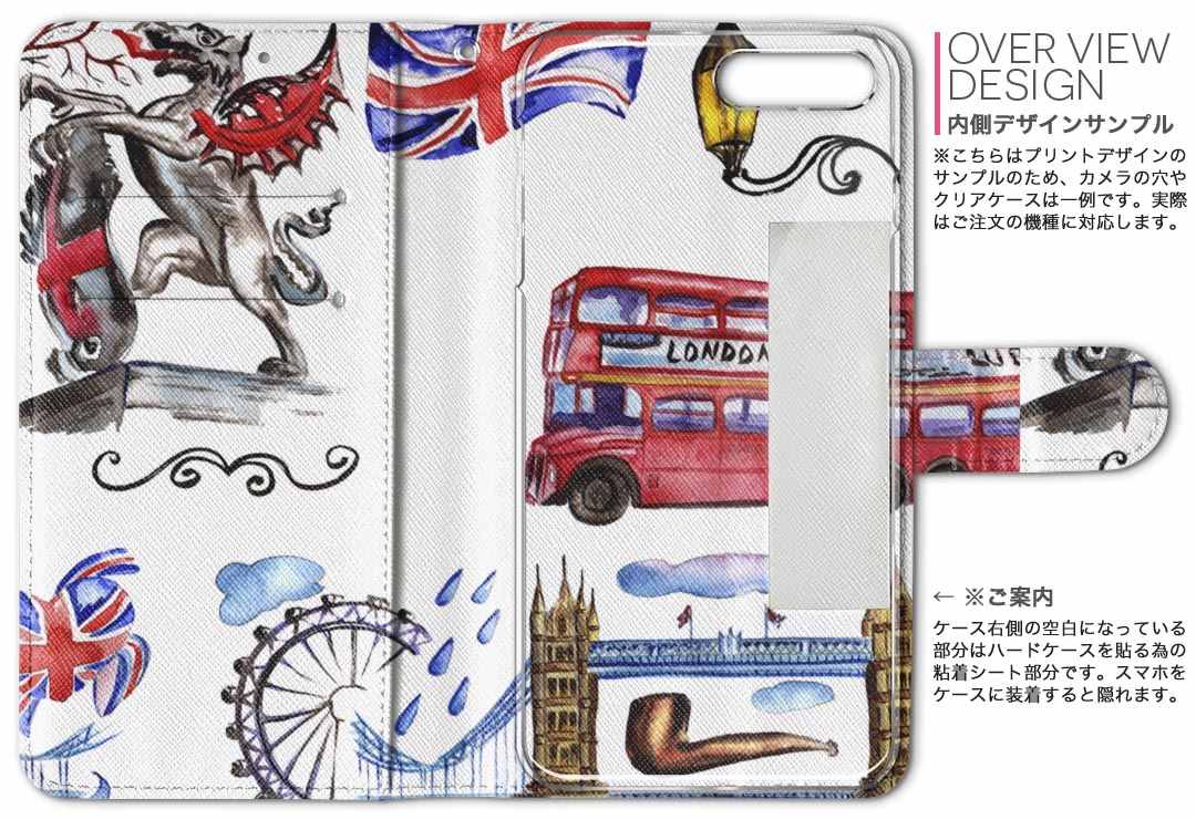 F-03K らくらくスマートフォン me docomo ドコモ f03k 両面プリント 裏表 内側 内面 スマホ カバー レザー ケース 手帳タイプ フリップ ダイアリー 二つ折り 革 フルデザイン 014851 ロンドン 街 イラスト